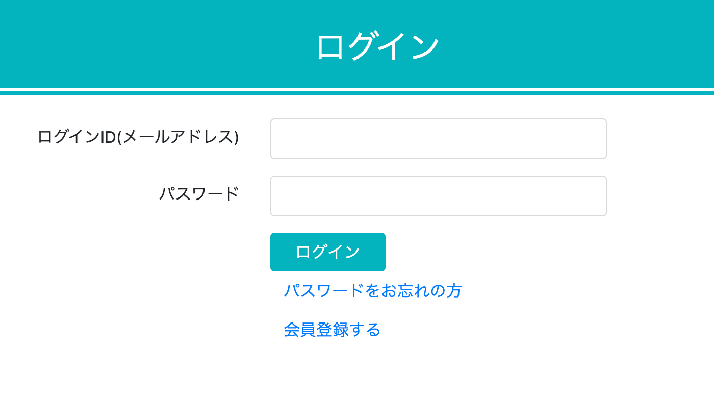 ログインページで、会員登録時に設定したメールアドレス、パスワードを入力し、ログインボタンを押してください。